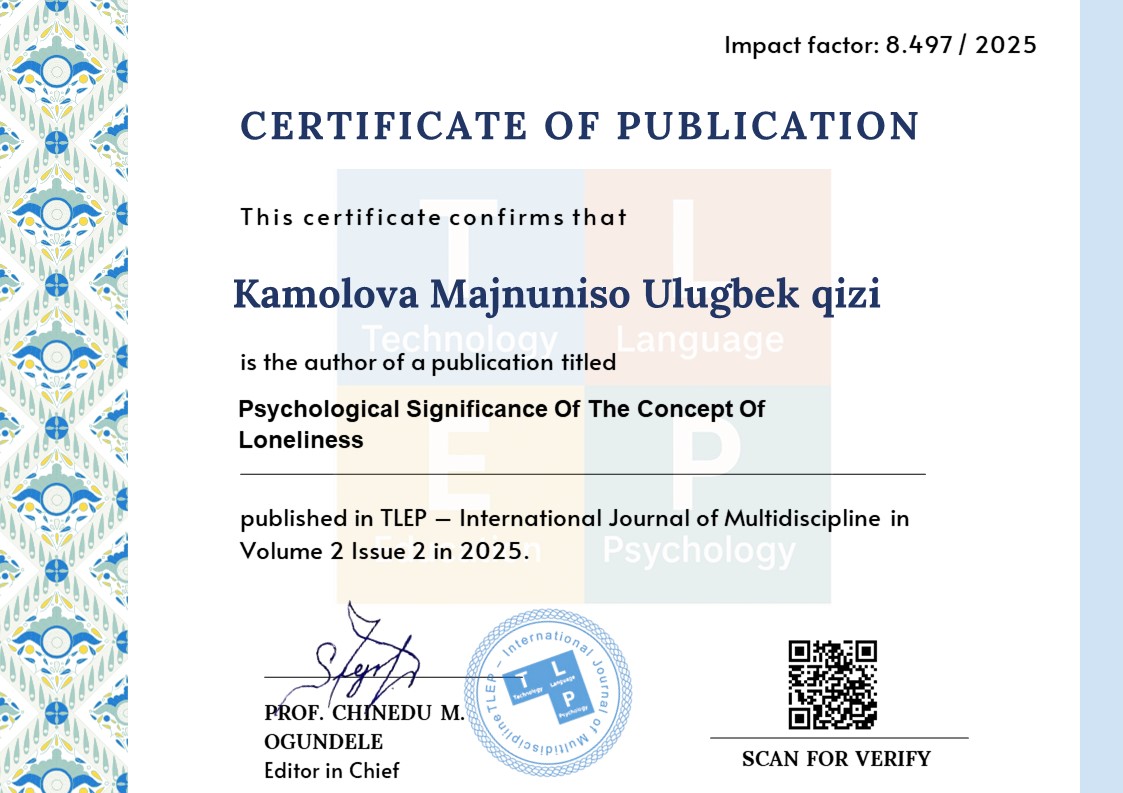 The study attempts to reveal the general and socio-psychological content of the concept of Loneliness. The study is based on the theories of some researchers. The article also highlights the philosophical and psychological aspects of the concept of Loneliness and draws a general conclusion. Not only the concept of Loneliness, but also some social concepts corresponding to it are taken into account, and their etymology is briefly discussed. The study effectively used theoretical and etymological methods. As a result, the psychological aspects of the concept of Loneliness are revealed.