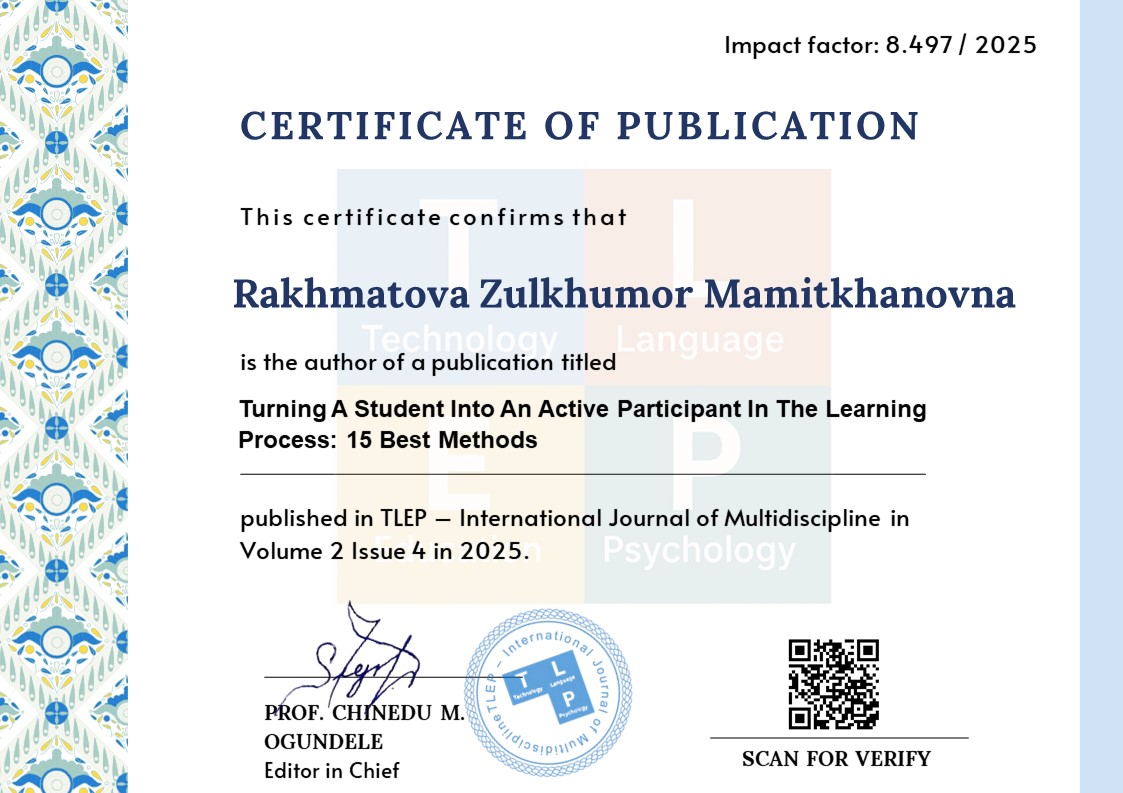 Yuldashev Z. Yu., Bobokhujayev Sh. I. Innovative methods of education: specific features of the case-study method and ways of its practical application. Tashkent: economy and finance, 2006. 88 p. 4.