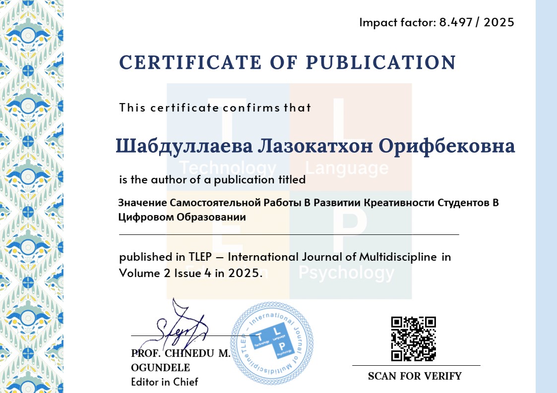 Значение Самостоятельной Работы В Развитии Креативности Студентов В Цифровом Образовании