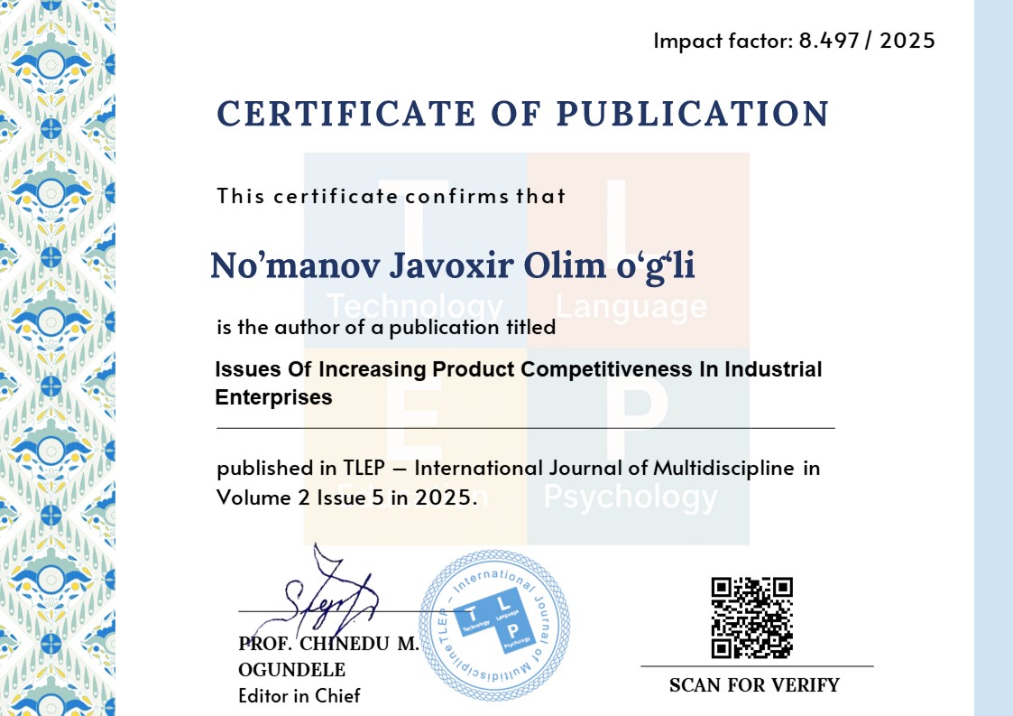 Issues Of Increasing Product Competitiveness In Industrial Enterprises