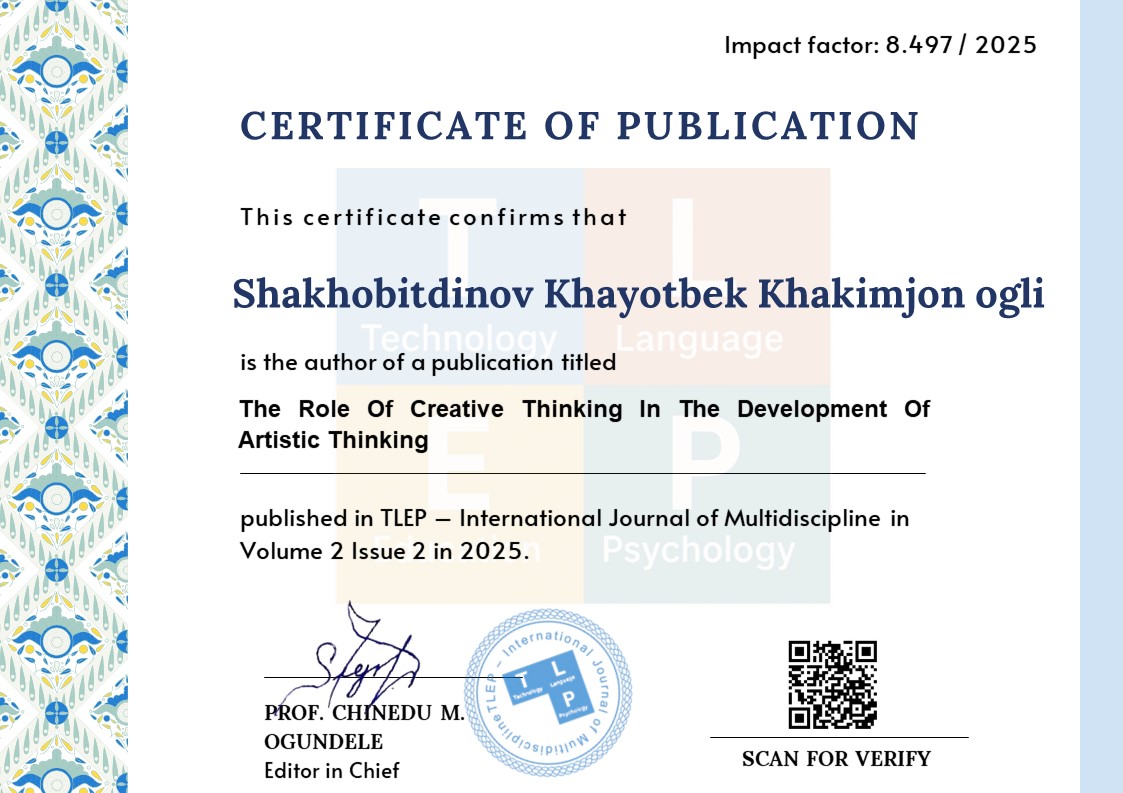 G’ulomova D "Bolalarda ijodiy fikrlashni shakllantirish" Ta'lim va ilm 2020.