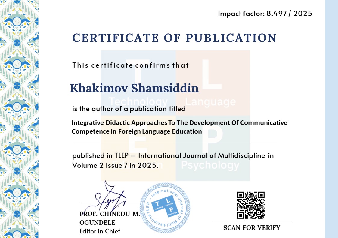 In contemporary foreign language pedagogy, the development of communicative competence has become a central educational objective, reflecting the shift from knowledge-based to performance-oriented learning paradigms. This article explores four key methodological approaches—activity-based, learner-centered, competency-based, and contextual approaches—that underpin effective communicative competence formation. Each approach represents a distinct dimension of modern didactics, contributing to the holistic development of linguistic, sociolinguistic, and pragmatic abilities. Drawing on both international research and Ahmedova’s (2020) didactic principles, the article emphasizes that the integration of these approaches creates a dynamic, interactive, and learner-responsive environment essential for real communication and intercultural interaction.