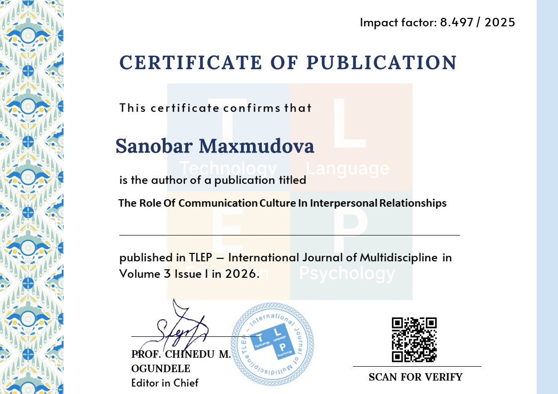 Shaxs ijtimoiy kompetensiyalari shakllanishida steoretiplarning o‘rni. Pedagogik mahorat jurnali.-Buxoro, 2018. - №4. - B. 94-97