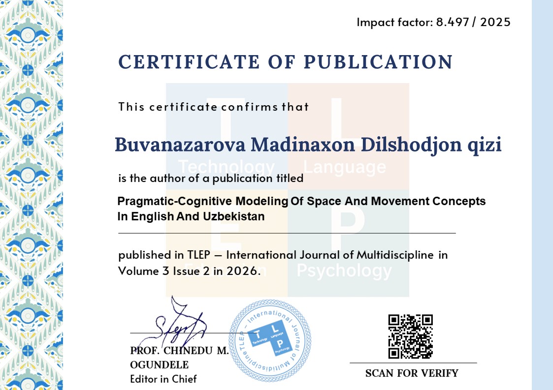 This research work is devoted to the comparative study of linguistic and mental models of space and movement concepts in English and Uzbek at the intersection of modern cognitive linguistics and pragmatics, in which the features of conceptualization of the world in both languages are analyzed. The article, based on Leonard Talmy's theory of the typology of movement reality, deeply studies the differences between the "satellite-framed" (expressing direction through additional elements) nature of the English language and the "verb-framed" and agglutinative nature of the Uzbek language. The study identified the metaphorical transfer of spatial relations and their pragmatic functions in discourse, and as a result, the cognitive dissonances between action verbs and spatial prepositions (in English) and conjunctive adverbs (in Uzbek) were scientifically substantiated. The results show that English speakers pay more attention to the manner of performing the action (manner), while Uzbek speakers focus on the direction and result of the action (path/result). This study is of great importance for translation studies, linguistic modeling of artificial intelligence, and the theory of intercultural communication, and sheds light on the specific mechanisms of thinking in two different systemic languages.