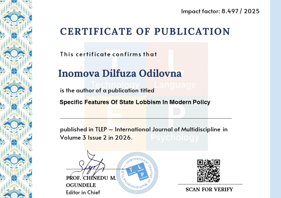 Specific Features Of State Lobbism In Modern Policy