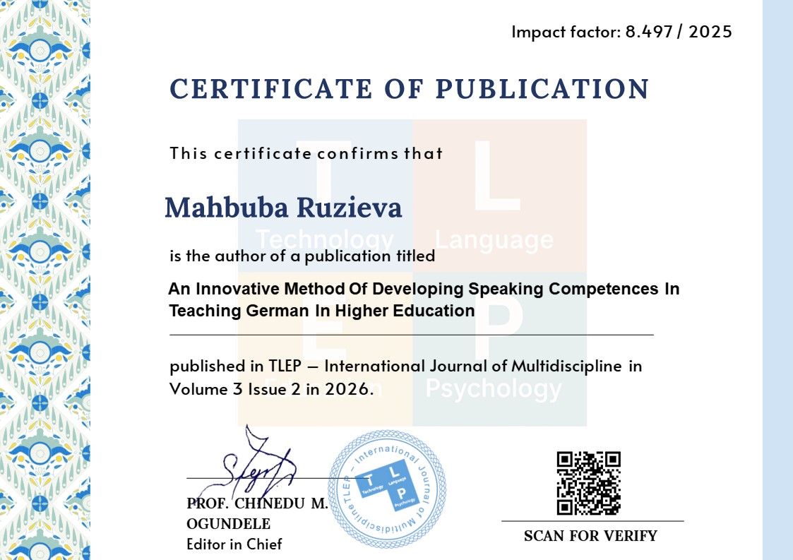 Narxodjayeva, X. (2024). THE ROLE OF FORMAL COMMUNICATION IN INTERPERSONAL RELATIONSHIPS. Western European Journal of Linguistics and Education, 2(11), 41-45.