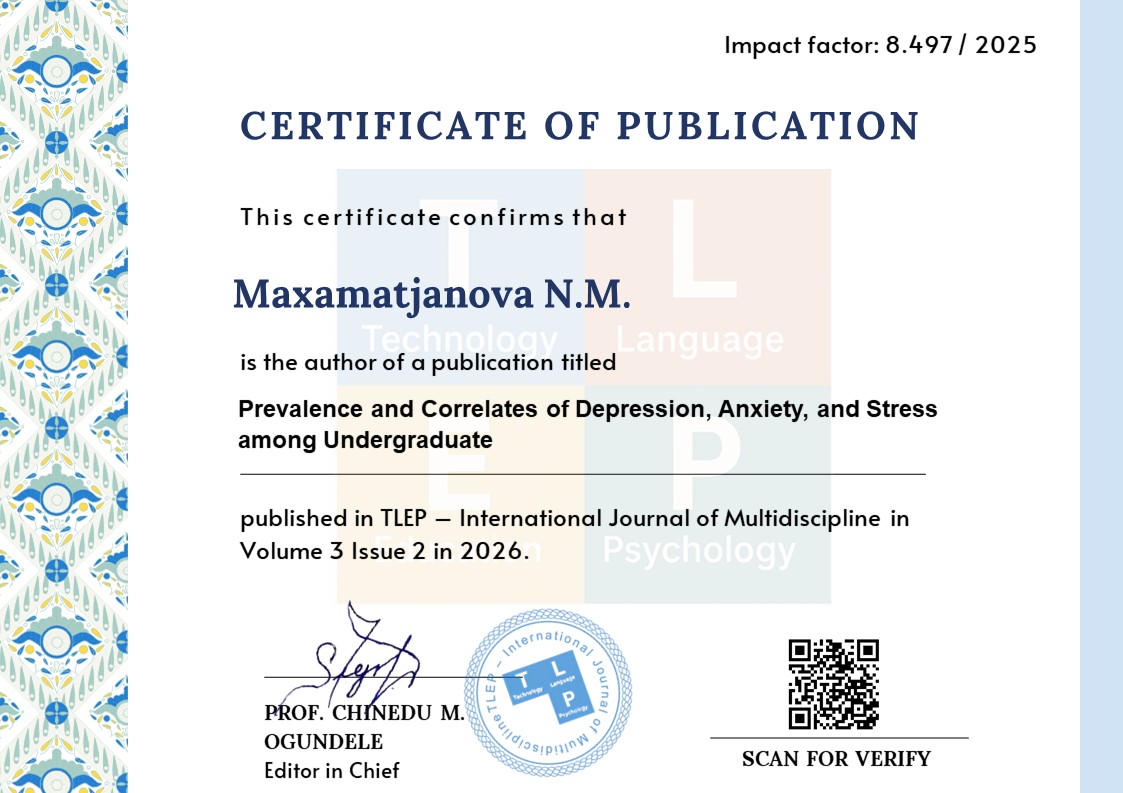 Conclusion: levels of psychological distress are exhibit substantially in undergraduate medical students, including academic pressure, anxiety related to their performance and emotional exhaustion. It is necessary to have routine mental health screening and institutional support mechanisms in place to promote the mental well-being of students.
