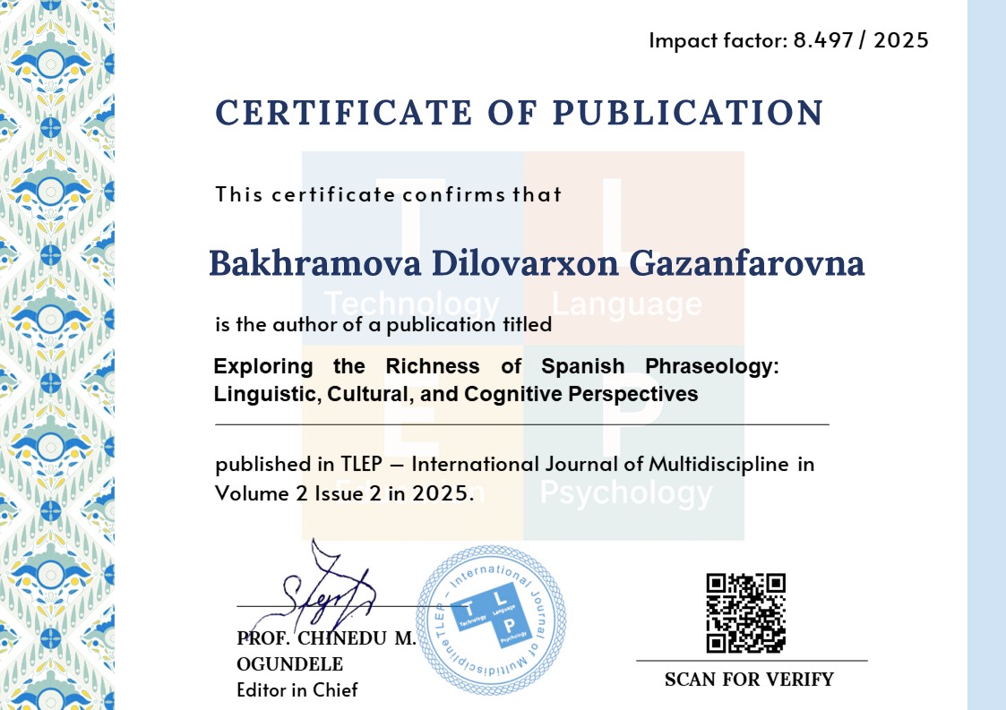 Spanish phraseology, as a vibrant and integral part of the language, encompasses idioms, set expressions, proverbs, and collocations that reflect the culture, worldview, and cognitive processes of Spanish-speaking communities. This article provides an in-depth exploration of the phraseological richness of the Spanish language by focusing on the structural types, functions, and semantic domains of phraseological units. Special emphasis is placed on their cultural significance, symbolic meanings, and pragmatic roles in communication. Through illustrative examples, the paper examines how phraseological expressions serve as linguistic repositories of historical, emotional, and cultural experiences. It also addresses challenges in translating and interpreting idiomatic expressions across languages and proposes didactic approaches for teaching Spanish phraseology to non-native speakers.