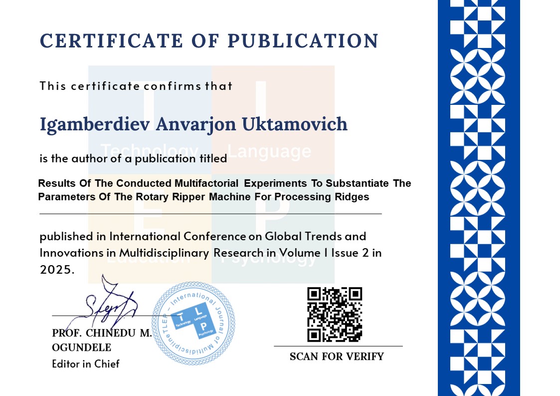Results Of The Conducted Multifactorial Experiments To Substantiate The Parameters Of The Rotary Ripper Machine For Processing Ridges