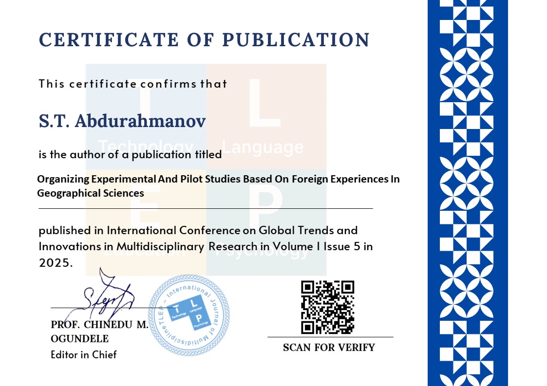 Organizing Experimental And Pilot Studies Based On Foreign Experiences In Geographical Sciences