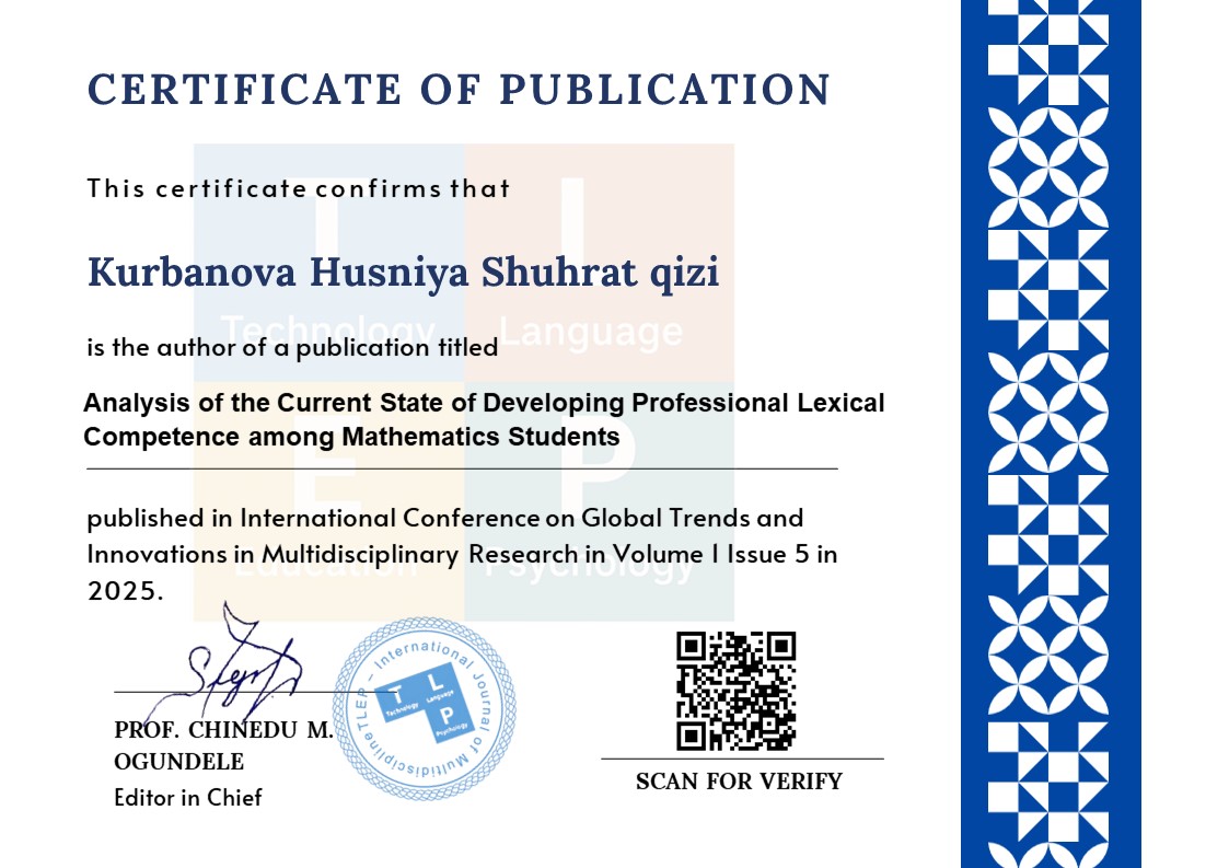 This study examines the current organization of English language instruction in mathematics education programs, focusing on pedagogical approaches to developing students’ lexical competence and the adequacy of instructional materials used in the classroom. The analysis was conducted across three universities in Uzbekistan: Gulistan State University (GulSU), Tashkent University of Applied Sciences (TASU), and Navoi State University (NavSU). Findings reveal that the course content often does not align with the official curriculum and prioritizes the development of general English skills rather than professional, field-specific language competence. Additionally, the textbooks in use are largely oriented toward improving grammar and general vocabulary, offering limited support for the acquisition of mathematical terminology and professionally relevant lexis. The results highlight the need for curriculum adjustment and the integration of authentic, discipline-specific materials to enhance lexical competence in ESP courses for mathematics students.