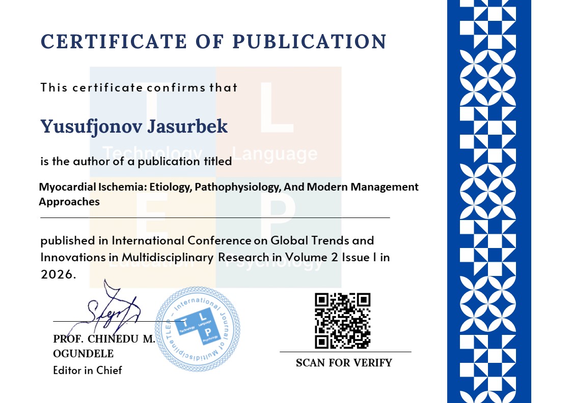 Myocardial infarction (MI) remains one of the leading causes of morbidity and mortality Myocardial ischemia is a common cardiovascular disorder resulting from an imbalance between myocardial oxygen supply and demand, primarily caused by atherosclerotic coronary artery disease. It is a leading cause of morbidity and mortality worldwide, contributing significantly to the global burden of cardiovascular disease. The pathophysiology of myocardial ischemia involves endothelial dysfunction, plaque formation, coronary artery stenosis, and subsequent reduced blood flow to the myocardium. Risk factors include hypertension, diabetes mellitus, dyslipidemia, smoking, sedentary lifestyle, and genetic predisposition. Clinically, patients present with angina pectoris, dyspnea, palpitations, fatigue, and, in severe cases, acute coronary syndrome or myocardial infarction. Diagnosis relies on a combination of clinical evaluation, electrocardiography (ECG), echocardiography, laboratory biomarkers (troponins, CK-MB), and coronary angiography.