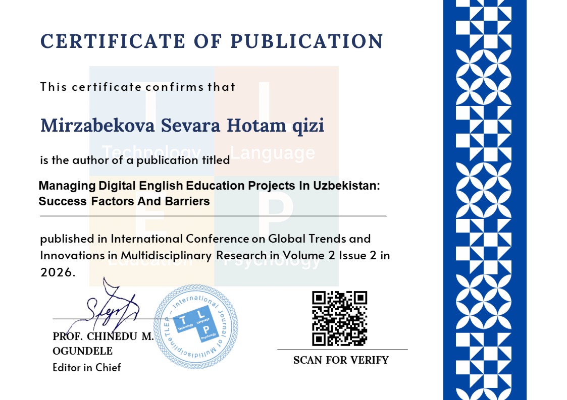 digital education, English language teaching, project management, ICT in education, digital competence, Uzbekistan education system, e-learning, educational innovation.Abstract