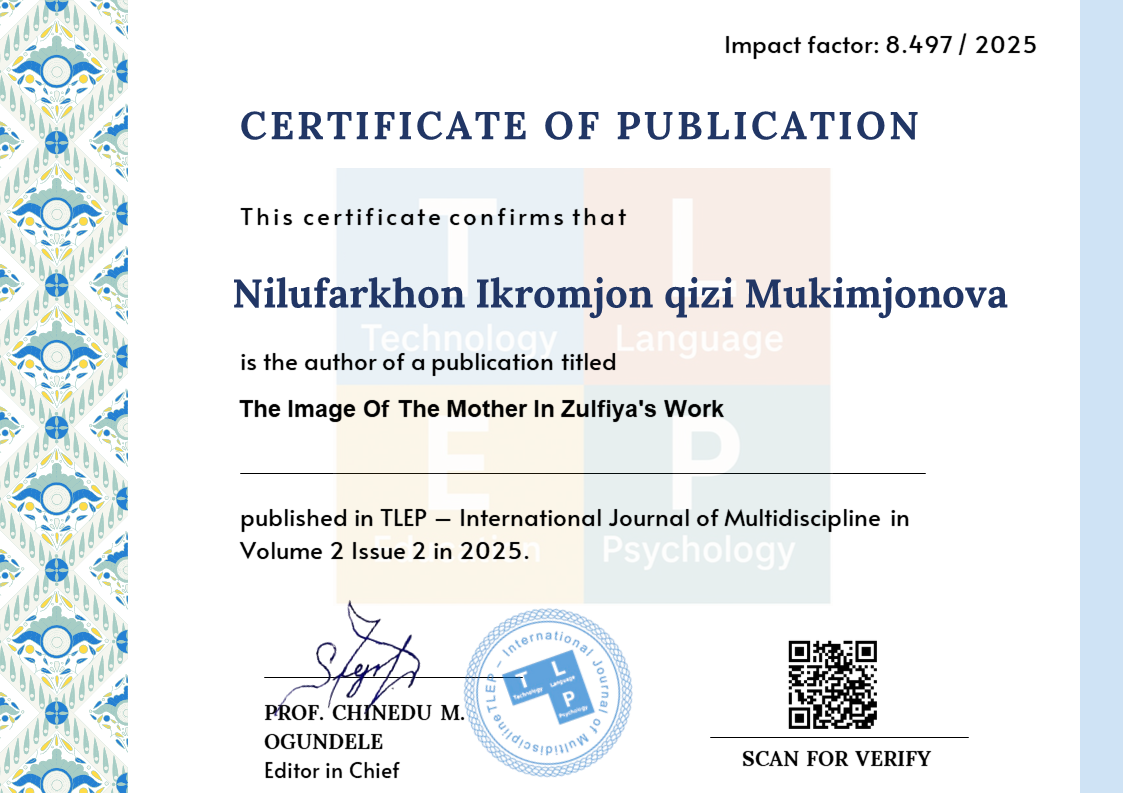 In her works, the poetess Zulfiya depicts the image of the mother not only as a woman's social and spiritual role, but also as a symbol of national and spiritual values, pride and patriotism. Accordingly, the article examines the formation of the image of the mother in Zulfiya's works, its didactic and artistic aspects, as well as the educational significance of this image for students