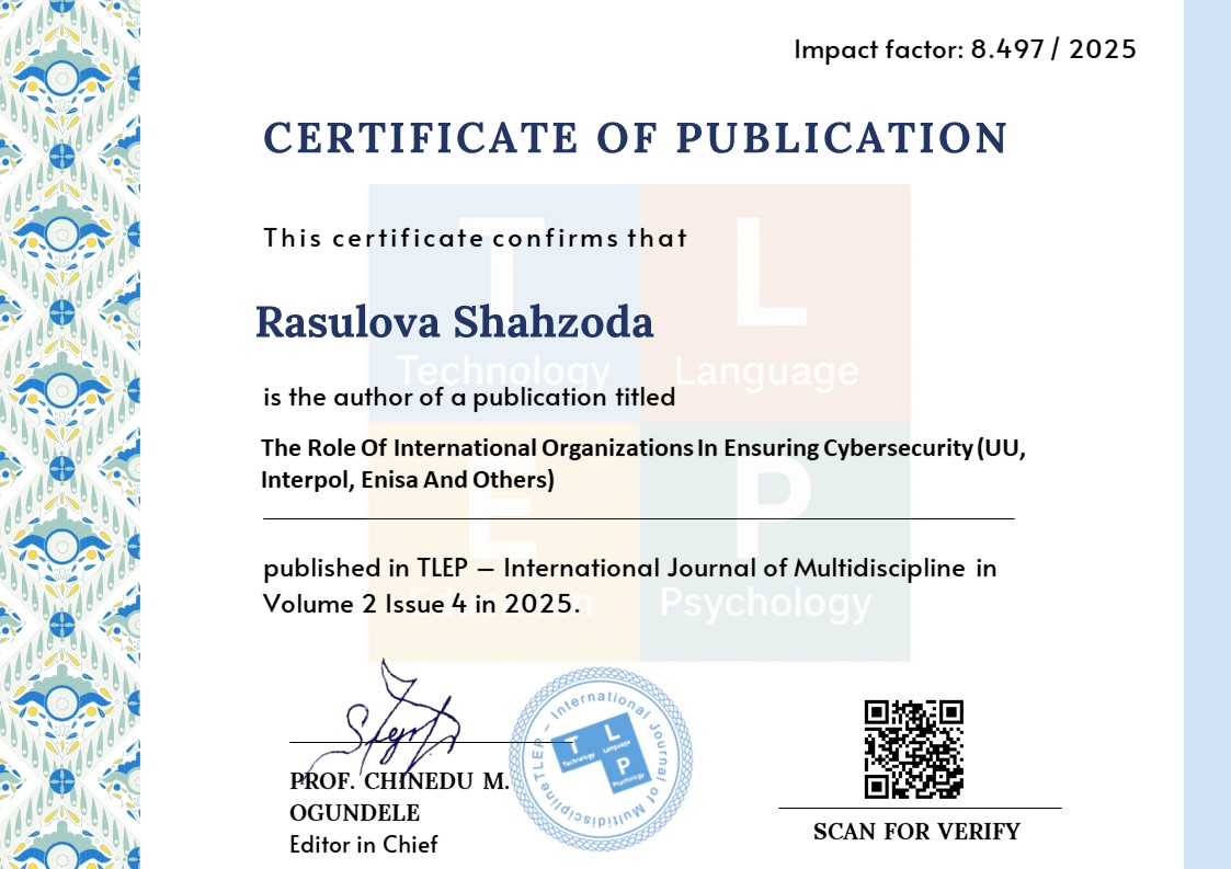 Christou, G. (2016). Yevropa Ittifoqida kiberxavfsizlik: Globallashgan axborot jamiyatini o‘rganish. Palgrave Macmillan. 89-112-betlar.