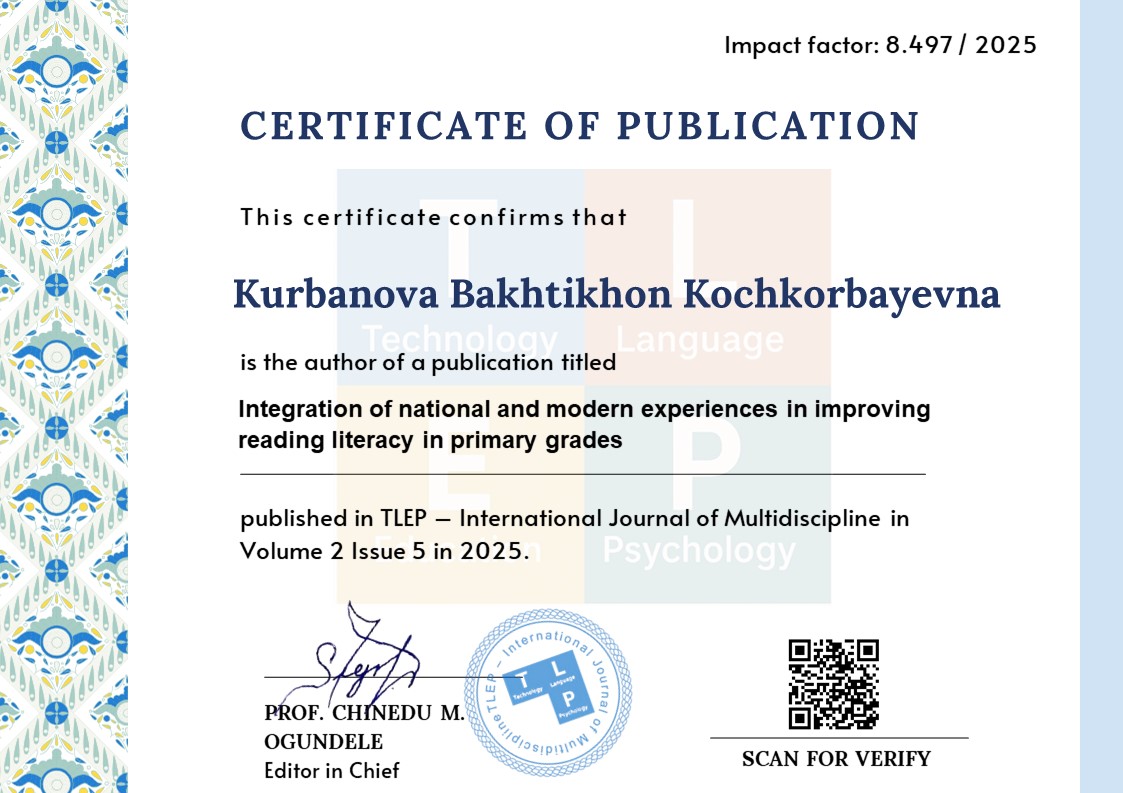 This scientific article considers the urgent problem of improving the level of reading literacy of students at the primary education stage, substantiating the scientific and practical importance of combining national pedagogical traditions with internationally recognized modern approaches. The focus of the research is on creating synergy between national experience (for example, the "teacher-student" tradition, methods of teaching classical literature) and modern experience (for example, international assessment criteria such as PISA, PIRLS, integration of digital literacy, interactive methods of developing understanding). The article theoretically and practically substantiates the fact that by combining these two approaches, it is possible to develop not only reading speed and technique, but also the skills of deep understanding of the text, critical thinking and application of the acquired knowledge to real-life situations. The research methodology is based on a combination of qualitative, quantitative and mixed methods, which allows testing the effectiveness of the integration model. The results show that the integrated approach leads to significant positive changes in the level of students' understanding of the text compared to traditional methods. This work serves to solve the task facing the education system of achieving world standards while maintaining national identity.