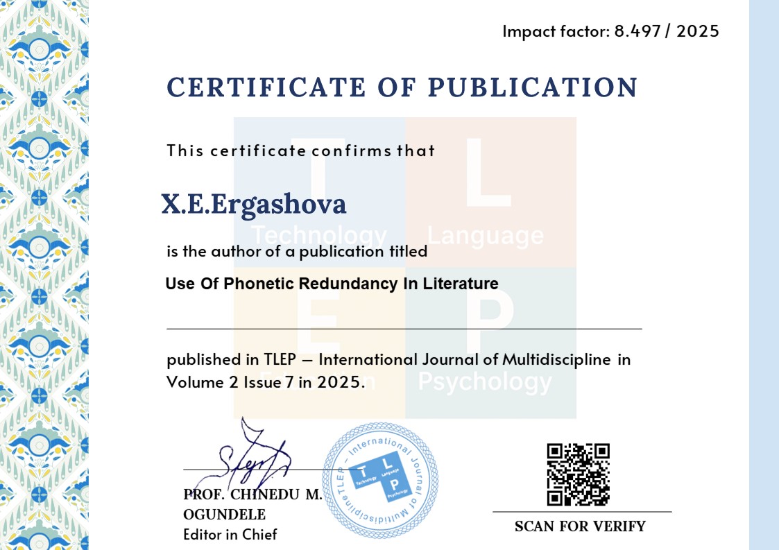 phonetic redundancy, literature, phonostylistics, alliteration, assonance, phonemic repetition, poetic sound patterns, rhythm in literature.Abstract