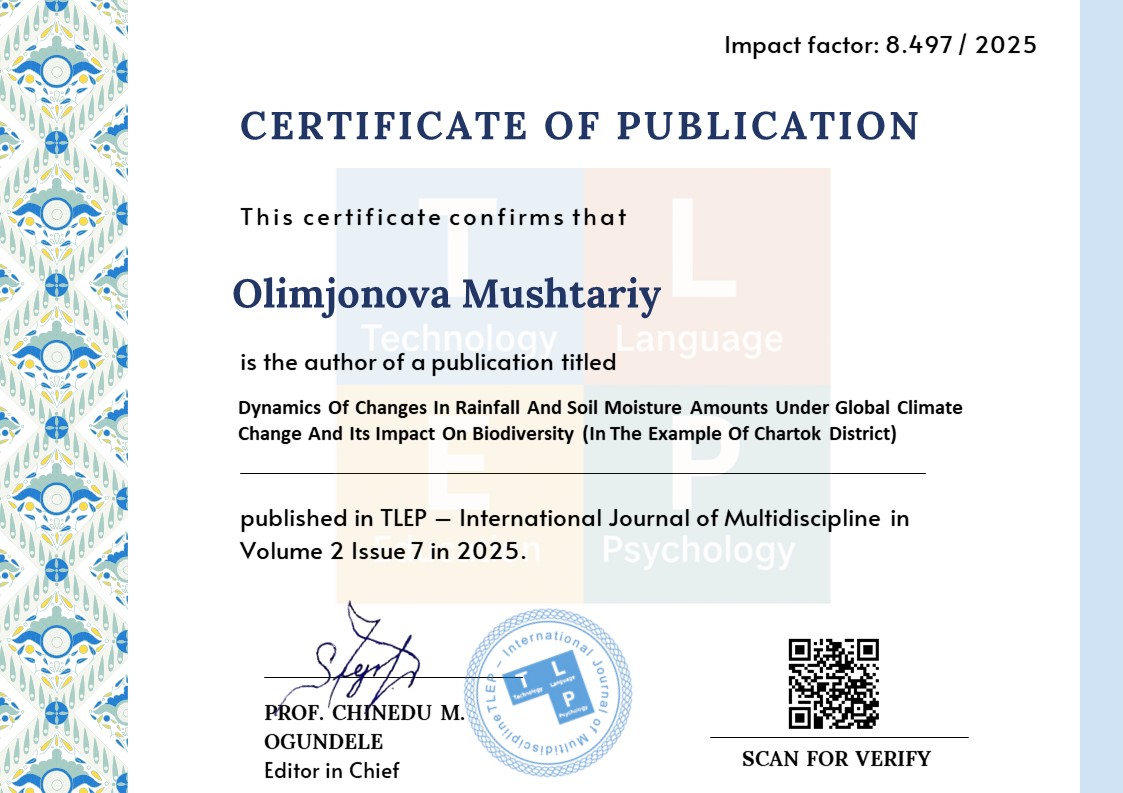 Dynamics Of Changes In Rainfall And Soil Moisture Amounts Under Global Climate Change And Its Impact On Biodiversity (In The Example Of Chartok District)