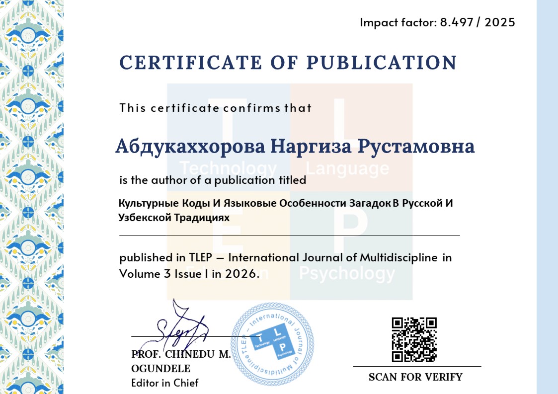 Nargiza Rustamovna Abdukahhorova. Linguistic Means of Expression in Russian and Uzbek Riddles: A Comparative Analysis. (2025). American Journal of Language, Literacy and Learning in STEM Education (2993-2769), 3(5), 31-37. https://grnjournal.us/index.php/STEM/article/view/7564