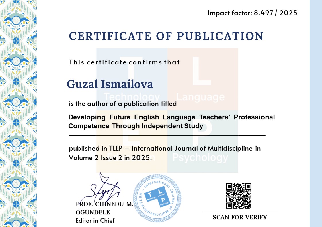 The professional competence of English language teachers is critical for effective teaching and improved student outcomes. Independent study, encompassing self-directed learning activities such as online courses, professional reading, and virtual communities, offers a flexible approach to professional development (PD). This systematic literature review examines how independent study contributes to the professional competence of future English language teachers, focusing on its effectiveness, challenges, and practical recommendations. Findings suggest that independent study enables personalized learning and skill enhancement, particularly through technology-facilitated platforms, but its success depends on teacher motivation, resource quality, and institutional support. Recommendations include curating high-quality resources, fostering online collaboration, and integrating independent study with formal PD programs. This review provides insights for educators, policymakers, and researchers aiming to enhance teacher development in the digital age.