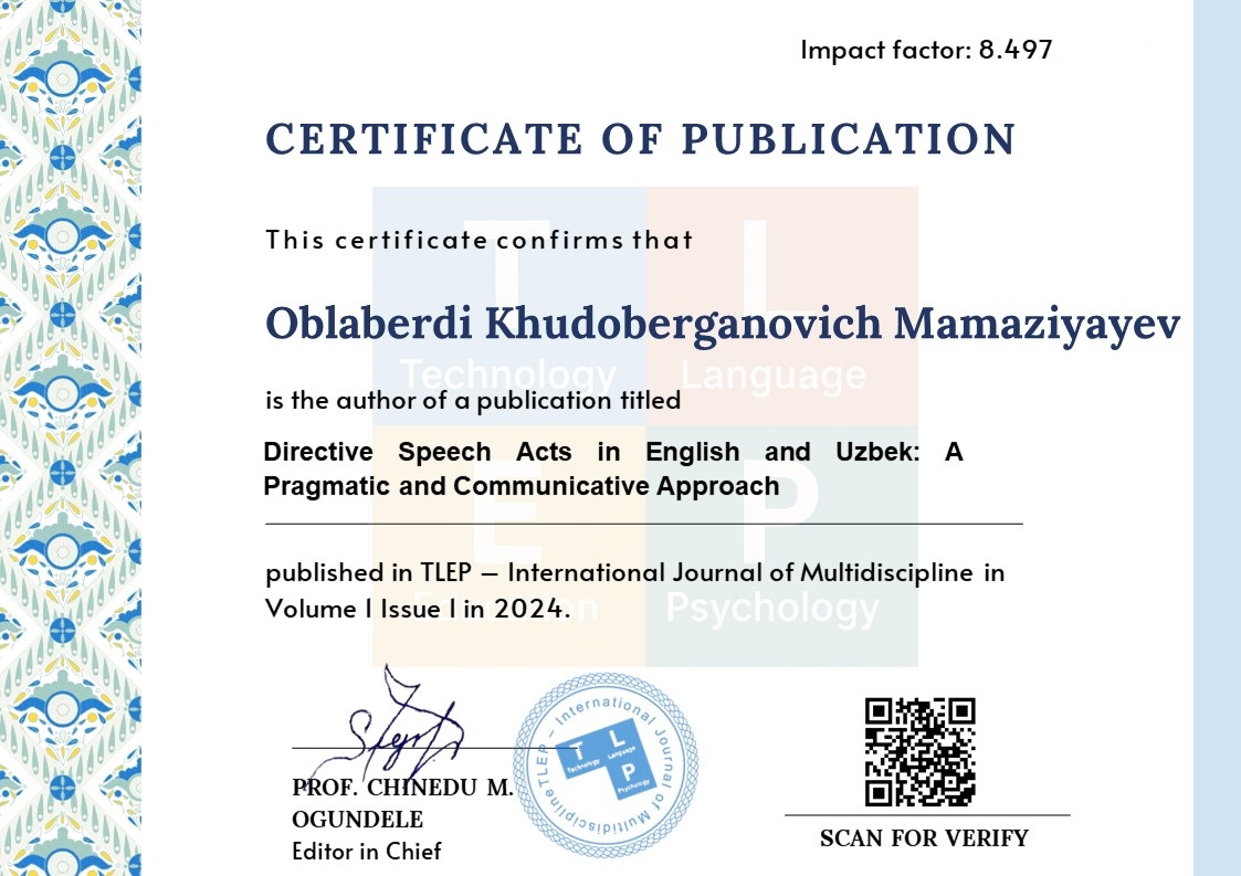 Directive Speech Acts in English and Uzbek: A Pragmatic and Communicative Approach