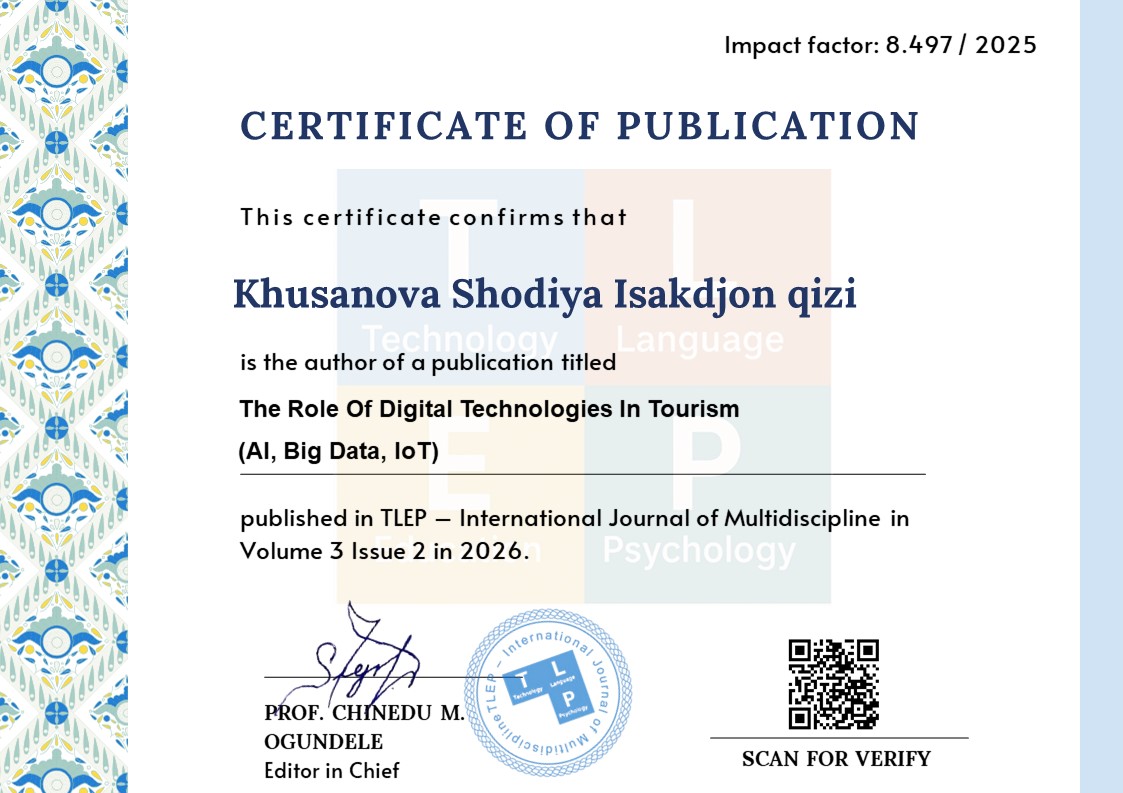 digital tourism, AI, Big Data, loT, tourism services, digital transformation and innovation.Abstract