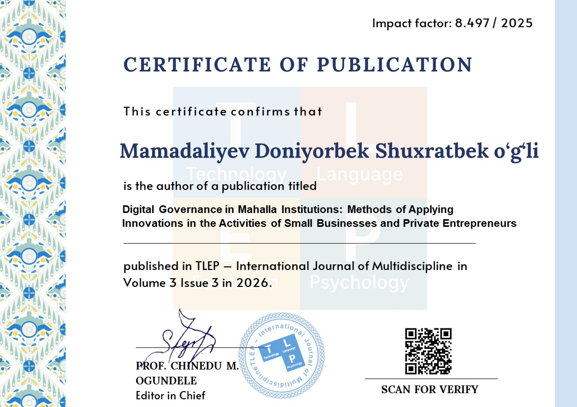 Digital Governance in Mahalla Institutions: Methods of Applying Innovations in the Activities of Small Businesses and Private Entrepreneurs