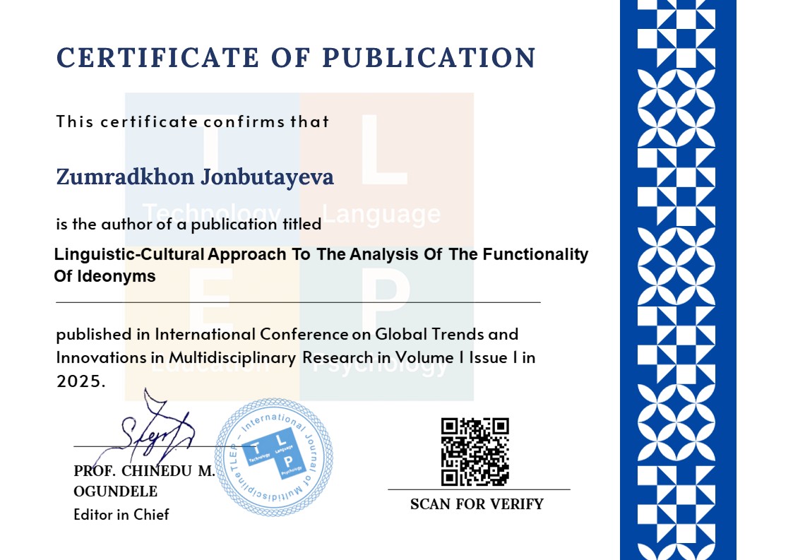 Linguistic-Cultural Approach To The Analysis Of The Functionality Of Ideonyms