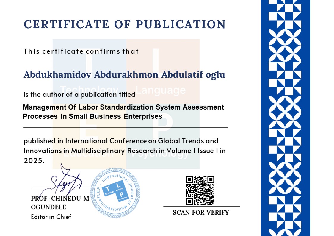 This scientific work analyzes the main structural elements of the labor standardization system in small enterprises and their functional significance. Modern mechanisms of labor standardization, standards of time, service, volume of work in production processes, organization of the workplace, and normative bases of labor actions are determined. The study studies methods for assessing the effectiveness of the standardization system - expert assessment, index of indicators, technological time analysis and evaluation mechanisms based on complex labor efficiency indicators.
