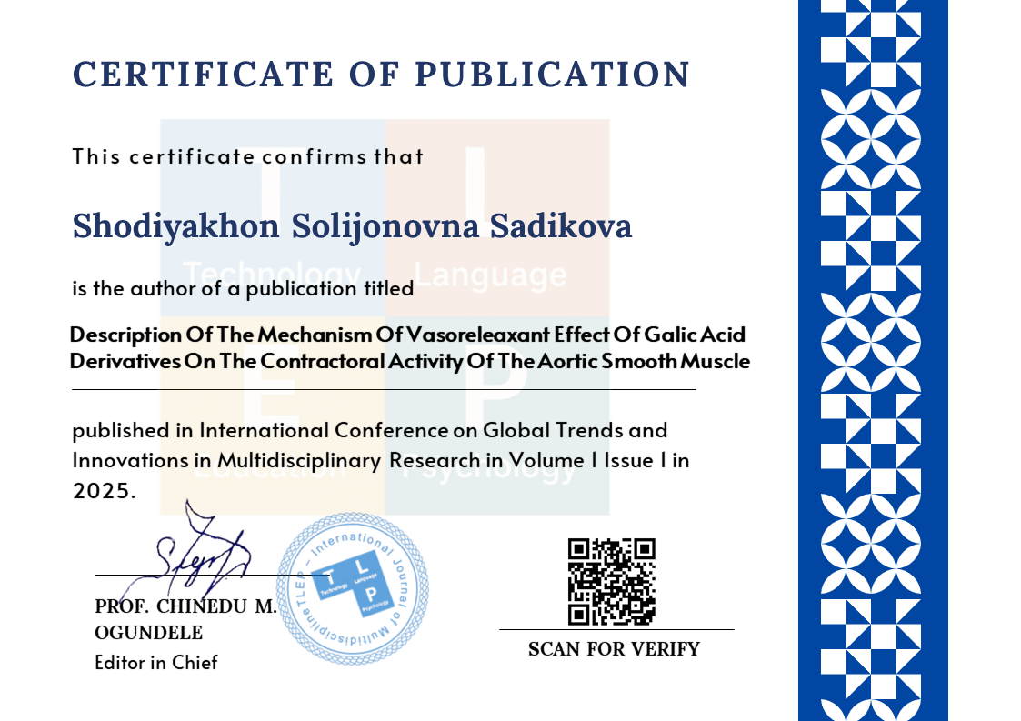 Description Of The Mechanism Of Vasoreleaxant Effect Of Galic Acid Derivatives On The Contractoral Activity Of The Aortic Smooth Muscle