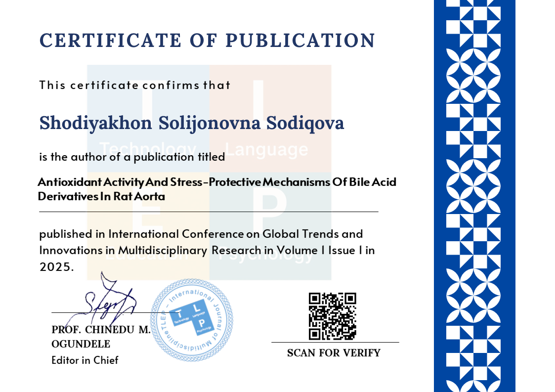 This study investigates the effects of bile acid derivatives — ursodeoxycholic acid (UDCA) and taurocholic acid (TCA) — on the contractile activity of smooth muscles in the rat aorta. The research confirmed that both compounds induce dose-dependent vasorelaxation, and their mechanisms of action were analyzed in detail. The vasodilatory effect of UDCA was found to be associated with nitric oxide (NO) synthesis via the endothelium, while TCA’s effect was attributed to the restriction of calcium ion influx into cells. The sensitivity of phenylephrine-induced smooth muscle contraction to these substances was assessed using myographic methods. The results suggest that UDCA and TCA may serve as potential natural therapeutic agents for cardiovascular diseases.