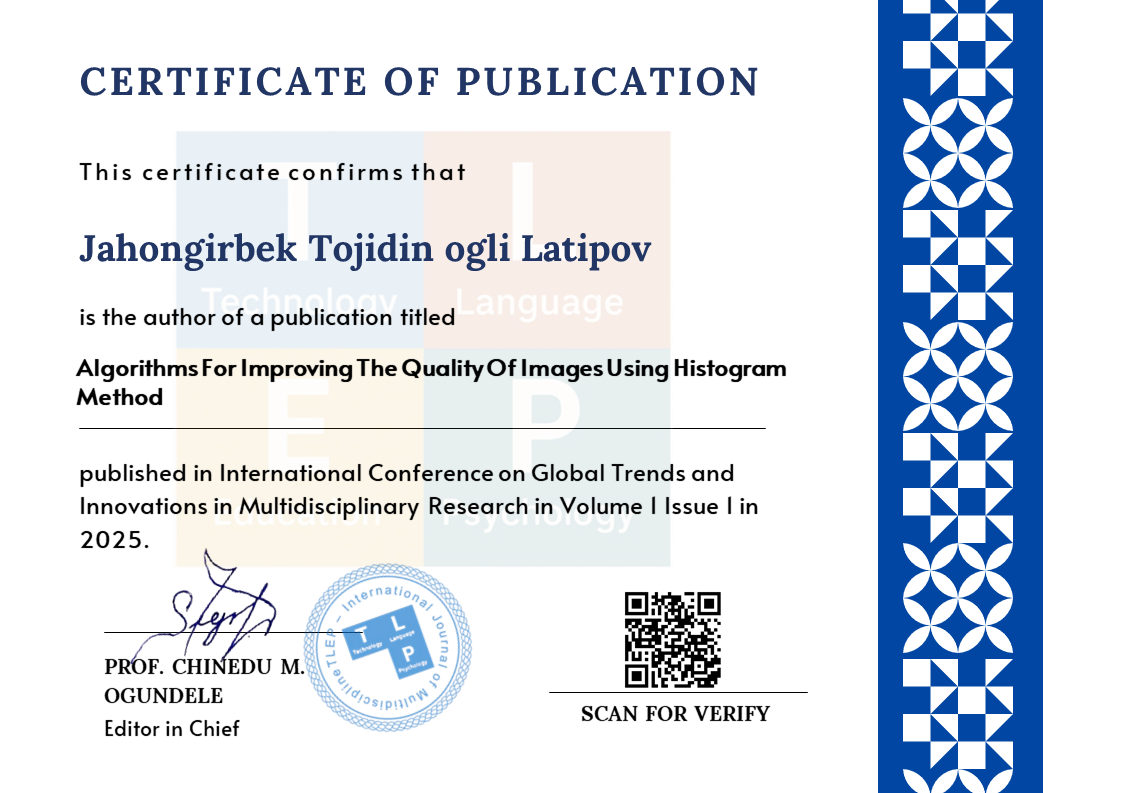 Zaynidinov H.N., Azimov B.R., Abdug‘aniyev M.M. - “Splayn usullari asosida tibbiyot tasvirlariga raqamli ishlov berish dasturi” mualliflik guvohnoma DGU 2022 6051, 2022;