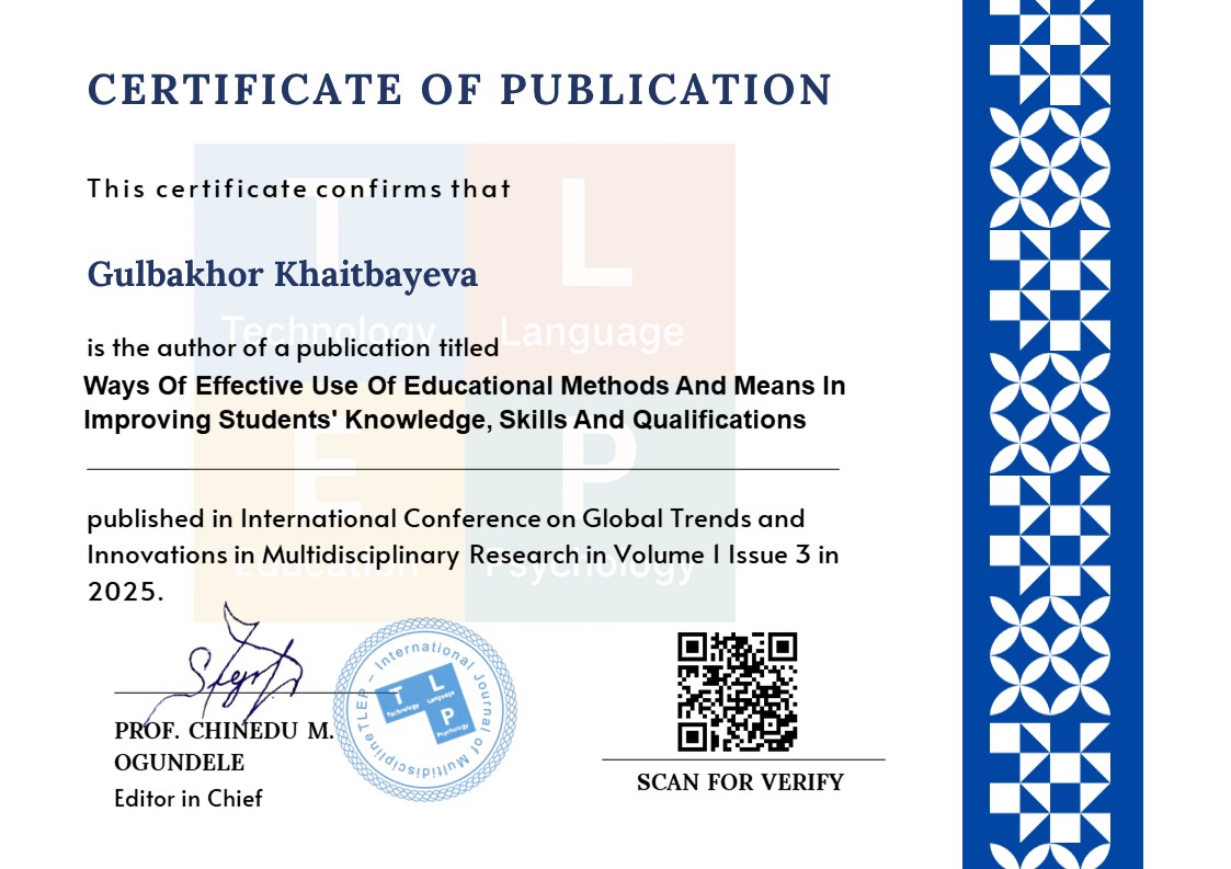 Ways Of Effective Use Of Educational Methods And Means In Improving Students' Knowledge, Skills And Qualifications