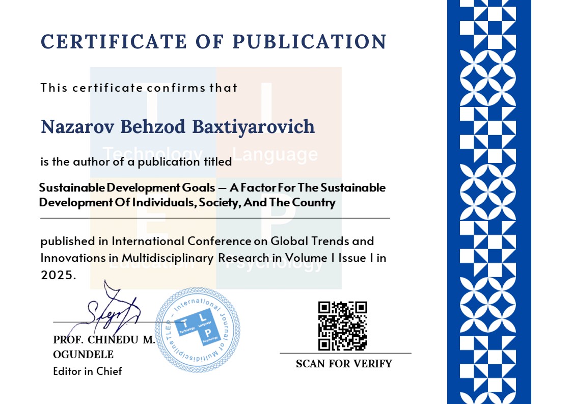 Sustainable Development Goals – A Factor For The Sustainable Development Of Individuals, Society, And The Country