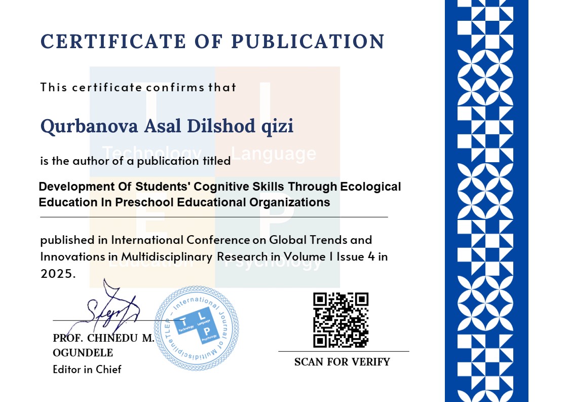 Development Of Students' Cognitive Skills Through Ecological Education In Preschool Educational Organizations