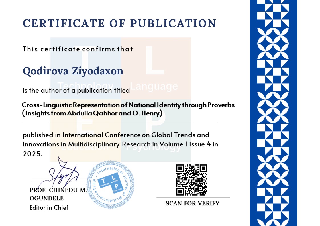 Cross-Linguistic Representation of National Identity through Proverbs (Insights from Abdulla Qahhor and O. Henry)