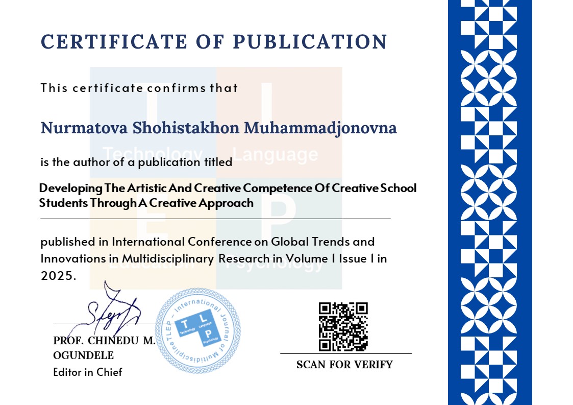 This article analyzes the role, content, and practical significance of the creative approach in developing the artistic and creative competence of students in schools of creativity. It emphasizes that a creative approach helps to reveal students’ individual potential and fosters the upbringing of an independent-thinking and aesthetically aware generation.