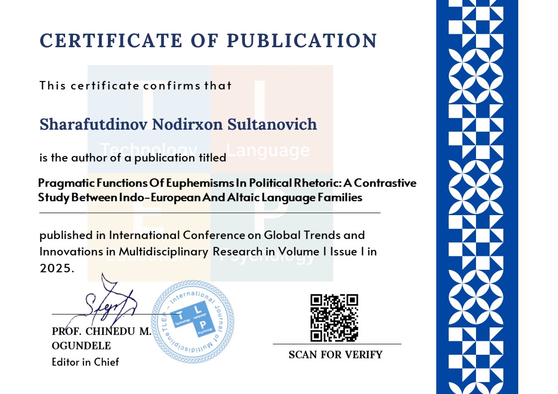 Pragmatic Functions Of Euphemisms In Political Rhetoric: A Contrastive Study Between Indo-European And Altaic Language Families