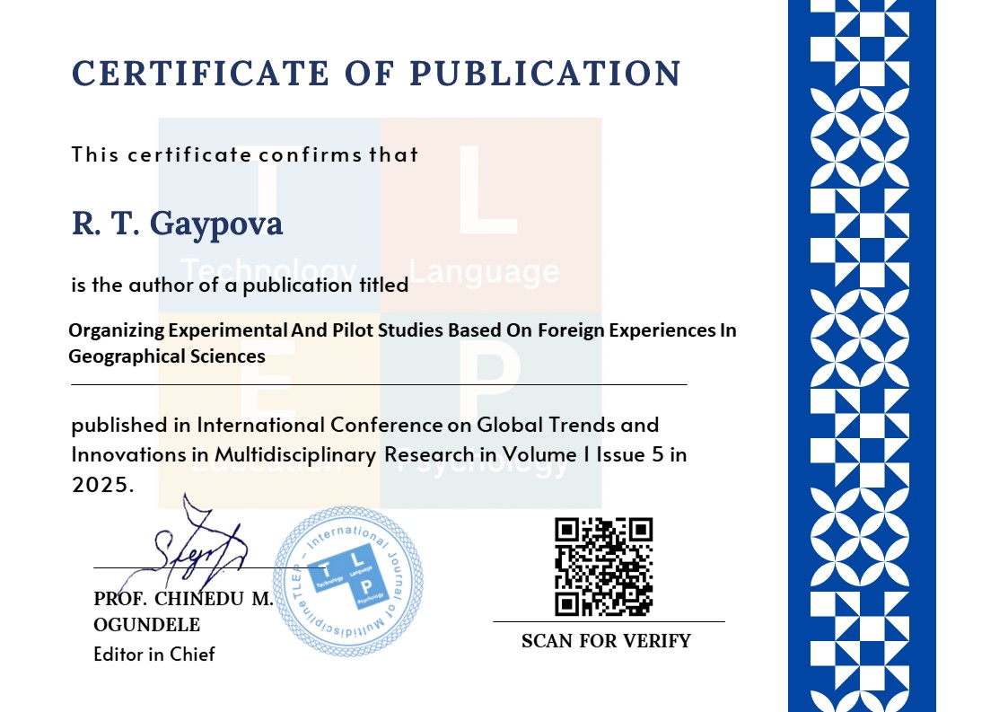 geography education, foreign experience, innovative method, field practice, laboratory experiment, ecological analysis, digital maps, GIS technology, competency-based approach, quality of education.Abstract