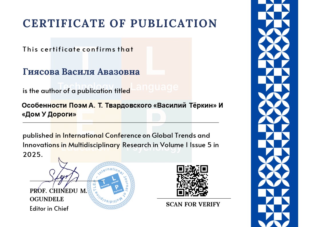 Статья посвящена сравнительному анализу двух ключевых поэм А. Т. Твардовского – «Василий Тёркин» и «Дом у дороги», занимающих особое место в русской литературе XX века. Автор статьи раскрывает различия в их тематике, композиции, жанровой специфике, образной системе и степени личностного присутствия поэта в тексте. Сравнительный подход позволяет выявить эволюцию творческого метода поэта: от жизнеутверждающего фронтового повествования к глубокой лирической исповеди, соединяющей личную трагедию с историей народа.