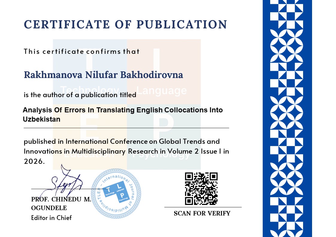 Analysis Of Errors In Translating English Collocations Into Uzbekistan