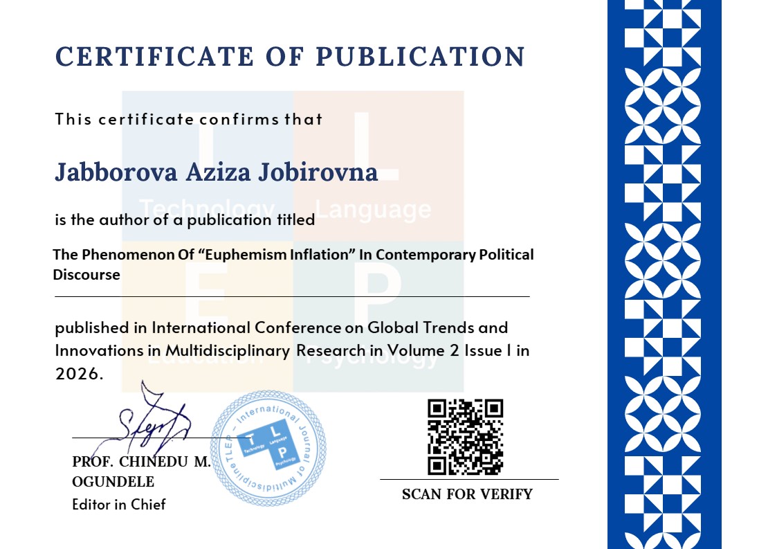 This article explores the phenomenon of euphemism inflation in contemporary political discourse. Traditionally, euphemisms have been viewed as linguistic tools used to ensure politeness and ethical communication by softening socially sensitive or controversial issues. However, in modern political discourse, euphemisms are increasingly used in excessive and repetitive ways, leading to a gradual dilution of meaning. The study adopts a qualitative, discourse-oriented approach and is based on general materials of contemporary political discourse. Through discourse analysis, critical discourse analysis, and linguopragmatic interpretation, the article examines how euphemism inflation affects semantic clarity, political accountability, and audience perception. The findings reveal that euphemism inflation contributes to semantic erosion, indirect management of responsibility, and normalization of controversial political actions. While euphemistic language initially aims to maintain ethical balance and reduce confrontation, its excessive use may result in ambiguity, reduced transparency, and growing public scepticism. The article argues that euphemism inflation should be treated as an independent analytical category within political discourse studies and highlights its significance for understanding modern political communication.