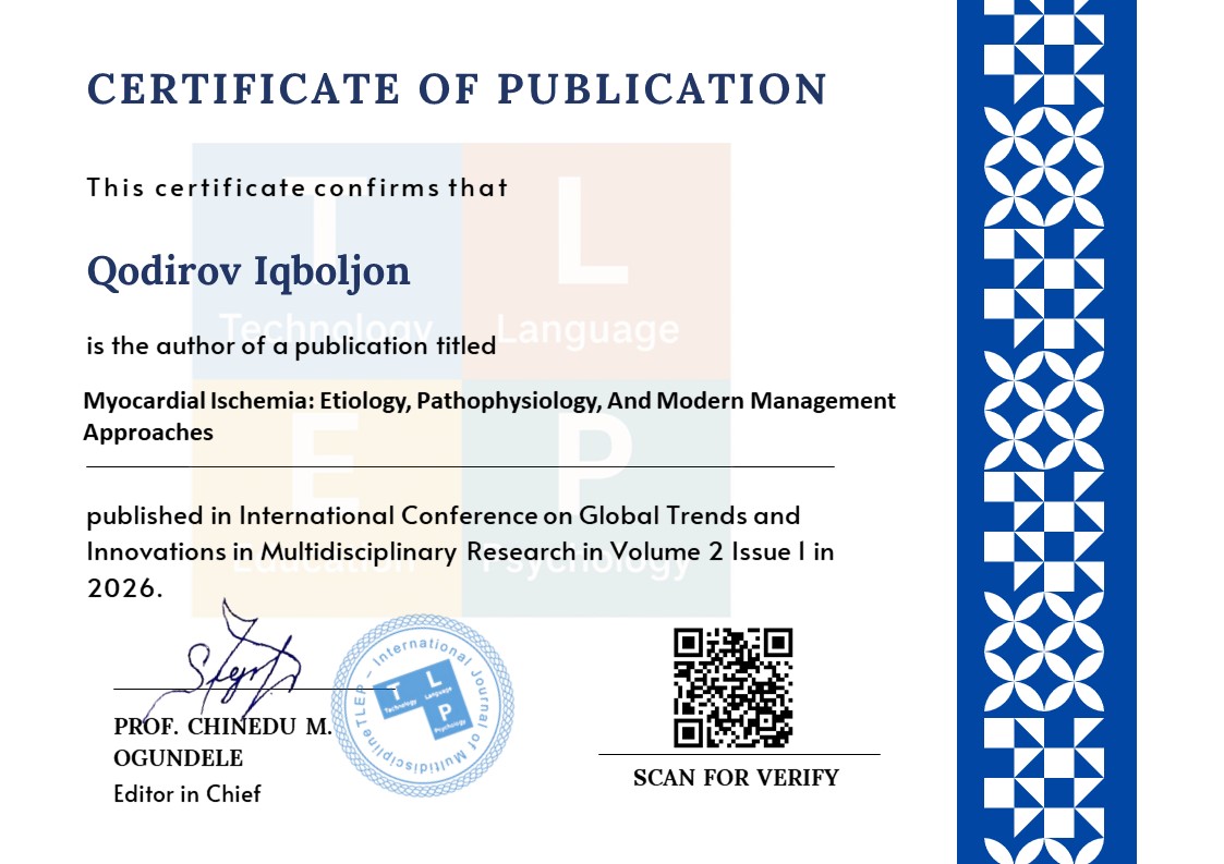 Myocardial infarction (MI) remains one of the leading causes of morbidity and mortality Myocardial ischemia is a common cardiovascular disorder resulting from an imbalance between myocardial oxygen supply and demand, primarily caused by atherosclerotic coronary artery disease. It is a leading cause of morbidity and mortality worldwide, contributing significantly to the global burden of cardiovascular disease. The pathophysiology of myocardial ischemia involves endothelial dysfunction, plaque formation, coronary artery stenosis, and subsequent reduced blood flow to the myocardium. Risk factors include hypertension, diabetes mellitus, dyslipidemia, smoking, sedentary lifestyle, and genetic predisposition. Clinically, patients present with angina pectoris, dyspnea, palpitations, fatigue, and, in severe cases, acute coronary syndrome or myocardial infarction. Diagnosis relies on a combination of clinical evaluation, electrocardiography (ECG), echocardiography, laboratory biomarkers (troponins, CK-MB), and coronary angiography.
