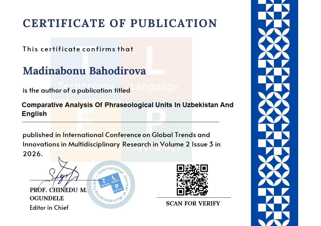 Comparative Analysis Of Phraseological Units In Uzbekistan And English