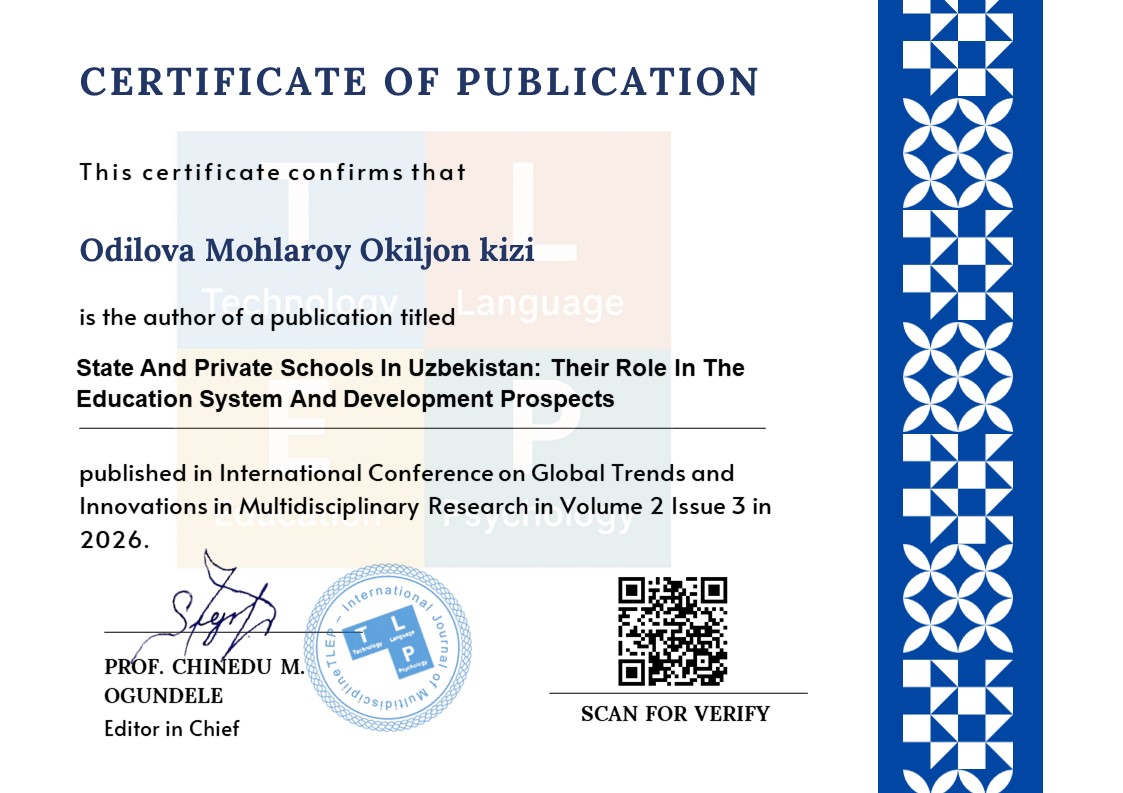 State And Private Schools In Uzbekistan: Their Role In The Education System And Development Prospects