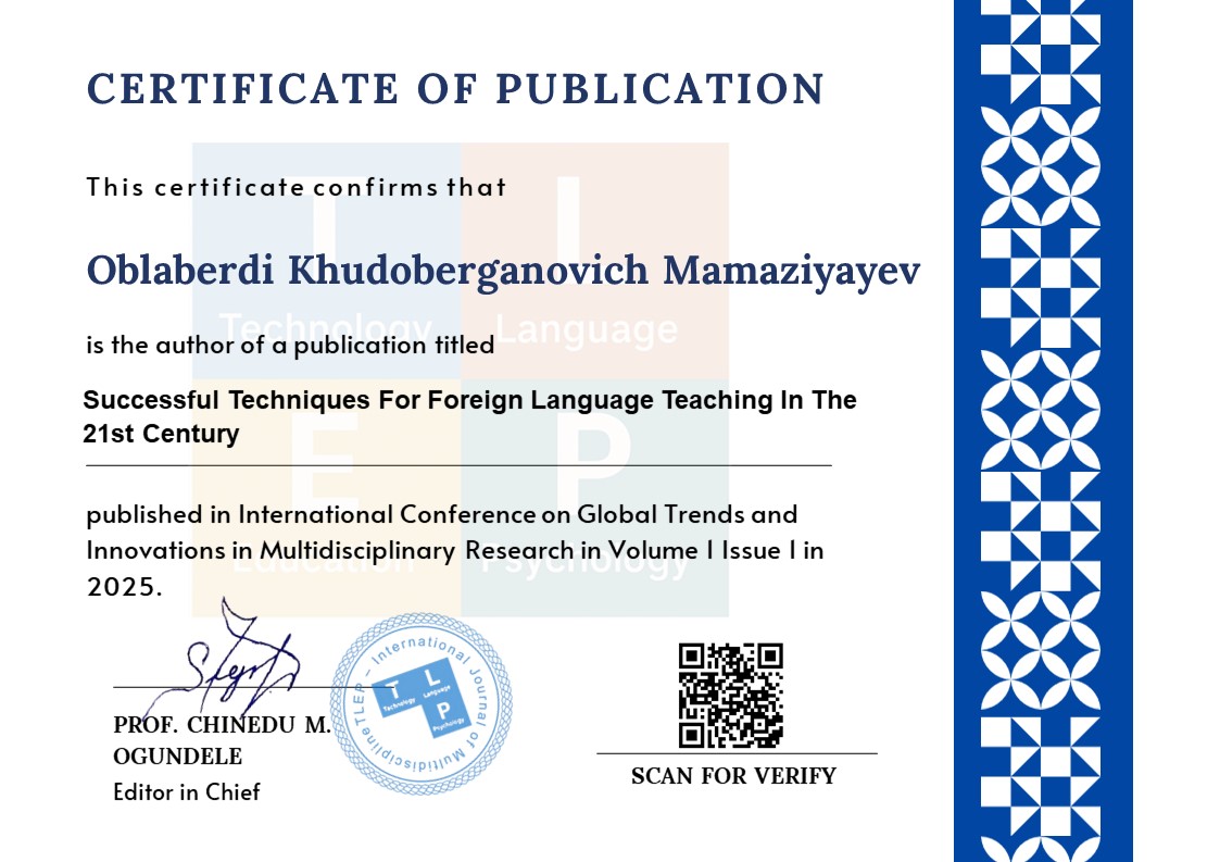 The process of teaching foreign languages has evolved significantly in the modern educational environment, driven by advancements in pedagogy, technology, and global communication needs. This article explores effective methods for teaching foreign languages, emphasizing communicative approaches, task-based learning, the integration of technology, and personalized learning techniques. Modern methods, such as blended learning and virtual classrooms, combine traditional instruction with digital tools to enhance accessibility and engagement. Moreover, the focus on cultural immersion and authentic material improves language proficiency and intercultural competence. These strategies provide educators with a comprehensive framework to develop learners’ communicative and practical skills.